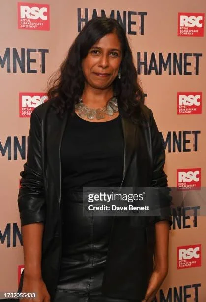 Actor and Playwright Lolita Chakrabarti wearing three pieces of TRH on opening night of her production of Hamnet at The Garrick Theatre. Styled by Deborah Sheridan-Taylor..
